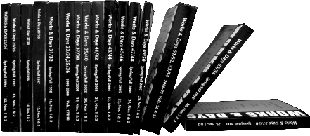 Works and Days 70/71 (Vol. 36, 2018-19) is the final volume of the journal. We thank everyone for their support of this publication. The archived web site will continue to be available.